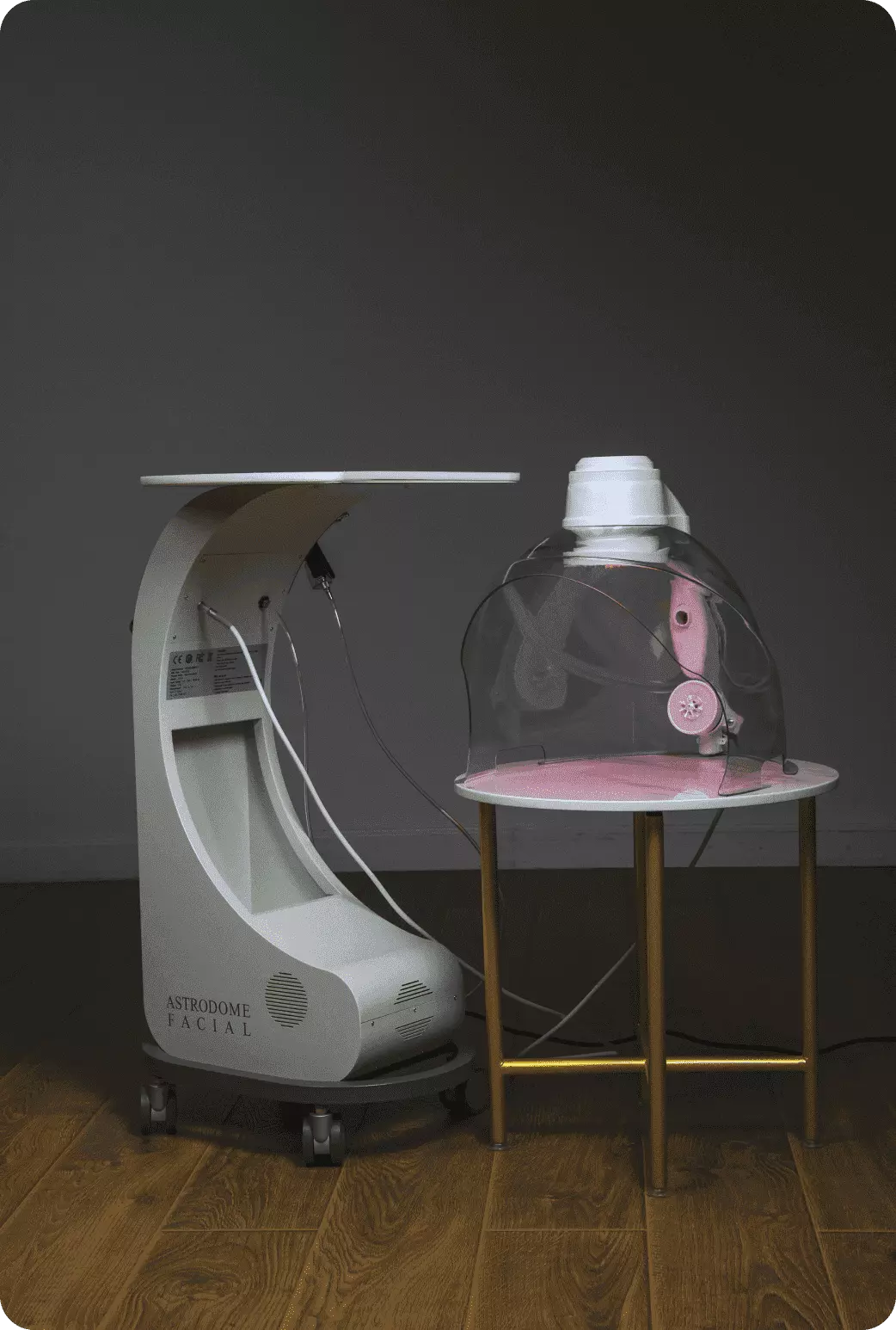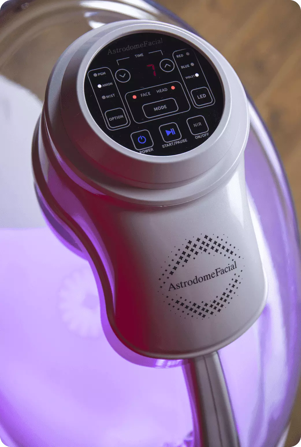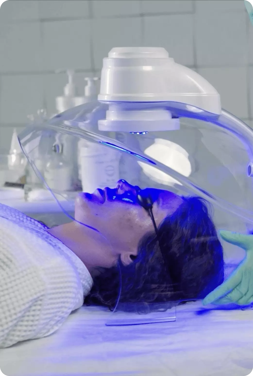 Комбинация LED-терапии, оксигенации и увлажнения кожи путем мелкодисперсного распыления заряженных биоактивных веществ.